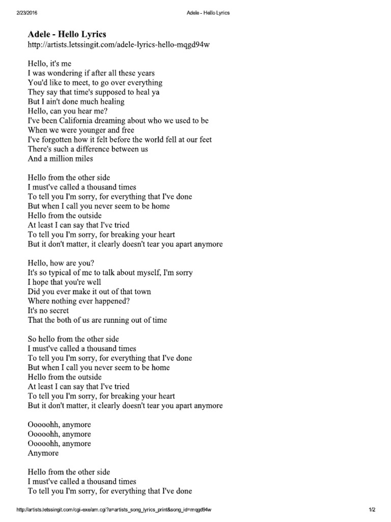 Adele Hello Lyrics Pdf Document - Inside of your hand… dm em (↓↓) am (↓) and you played it.