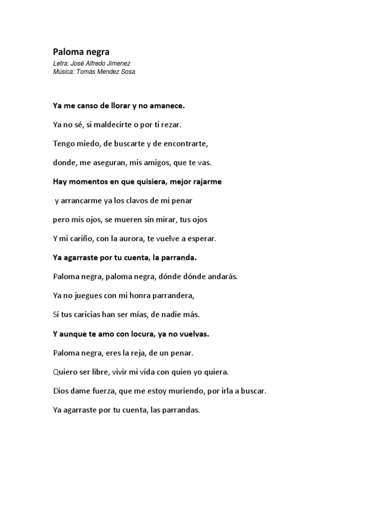 Paloma Negra Letra Vicente Fernandez - Ya me canso de llorar y no amanece ya no se si maldecirte o por ti rezar tengo miedo de buscarte y d.