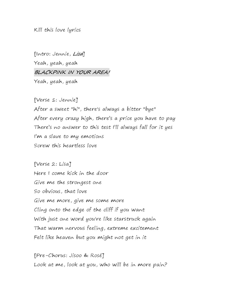 Black Pink Kill This Love Lyrics Kill This Love Lyrics Wattpad - She said goodbye too many times before.